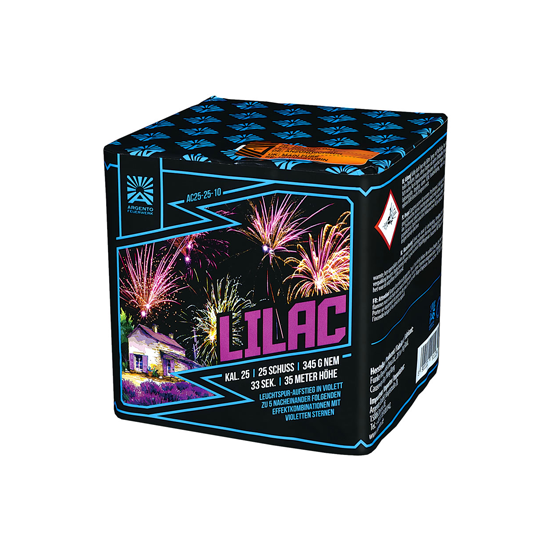 Leuchtspur-Aufstieg in violett zu 5 nacheinander folgenden Effektkombinationen mit violetten Sternen.
