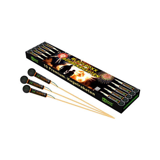 10 professionelle Kugelbomben-Raketen vom Kaliber 30 und 38 mm im Sortiment.