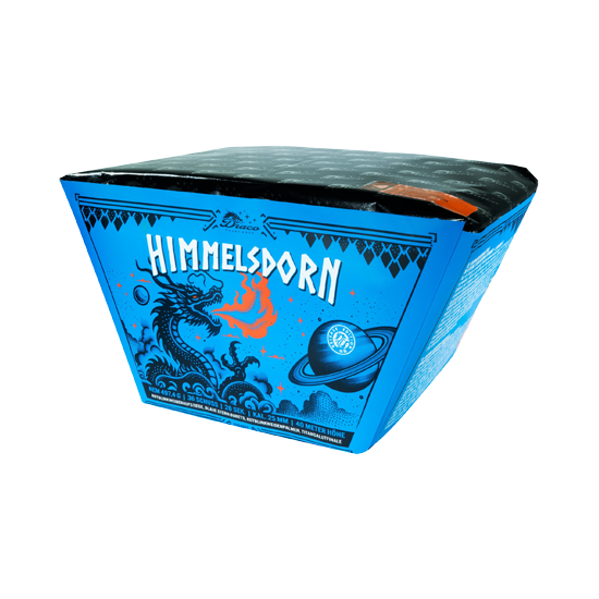 Effektbeschreibung: Gefächerte Rotblinkweidenaufstiege zu blauen Sternbukets mit Rotblinkweidenpalmen mit Titansalutfinale