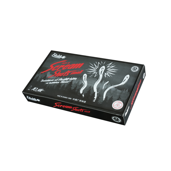 Bombettenrohr mit silberpeif-Aufstieg zu lautstarkem Titansalut. 10 Stück pro Schachtel.